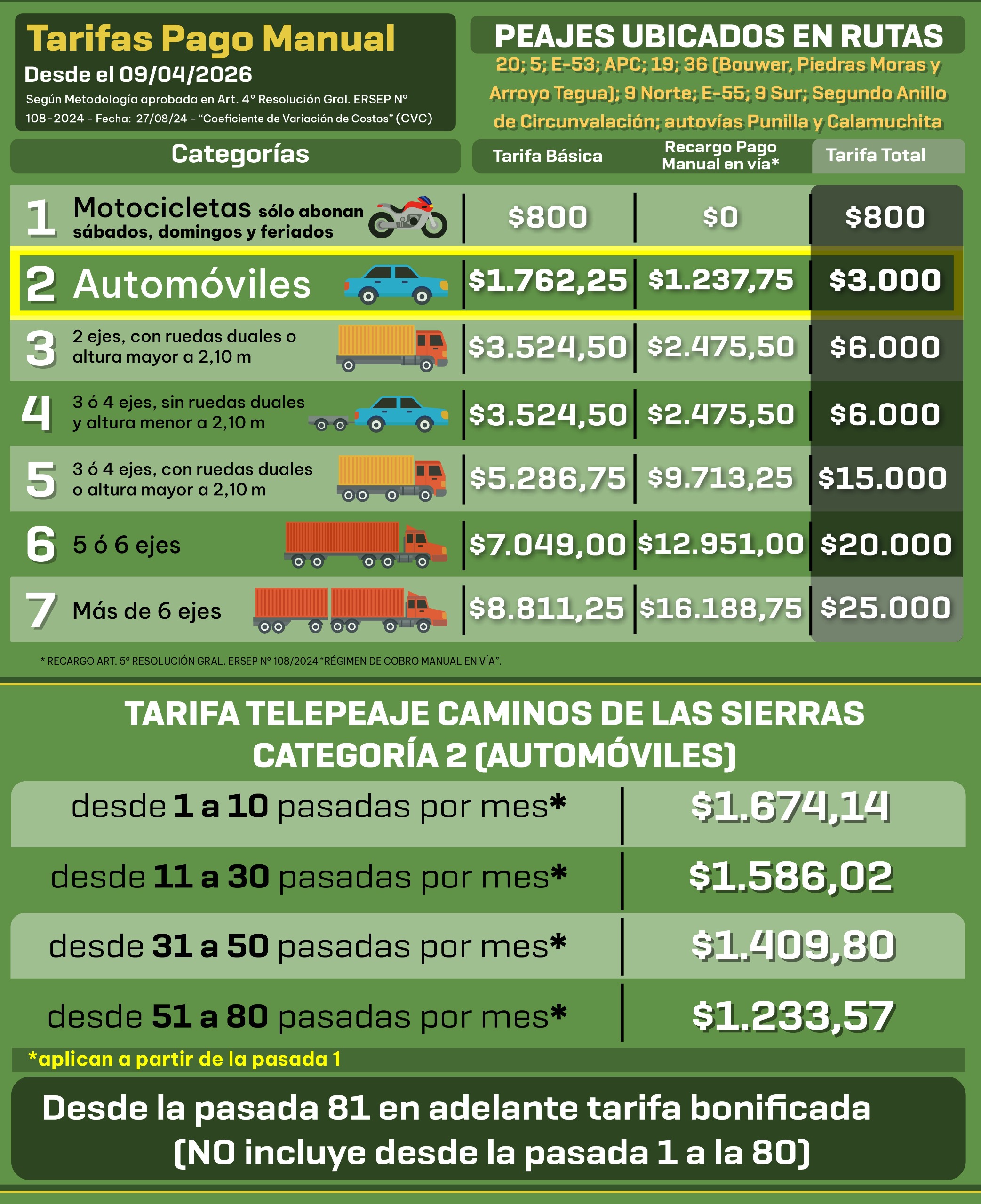 Nuevas tarifas a aplicar desde el 09/04/2026